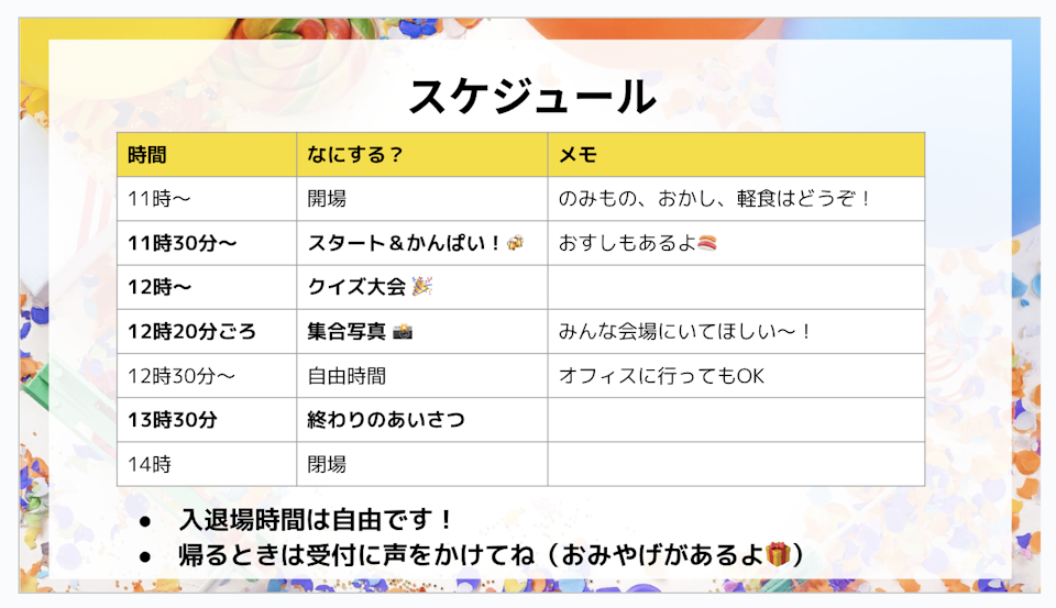 当日はオフィス近くの「FinGATE KAYABA」のイベントスペースをお借りして開催しました。子どもたちにも楽しんでもらえるよう用意したコンテンツは以下の通りです!