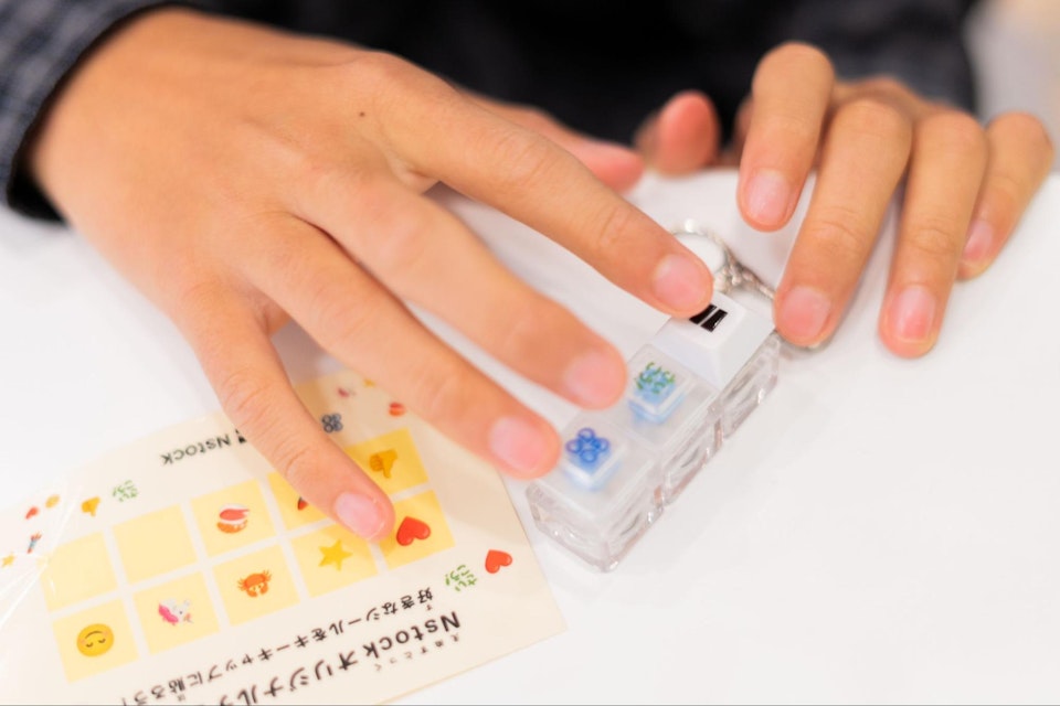 ワークショップのコーナーでは、Nstockオリジナルのカスタマイズできる光るキーキャップ作りを実施。キャップを付け替えたり、ファミリーデー専用に作ったデコシールを貼ったりと、大人も子どもも夢中になって作業を楽しんでいました。