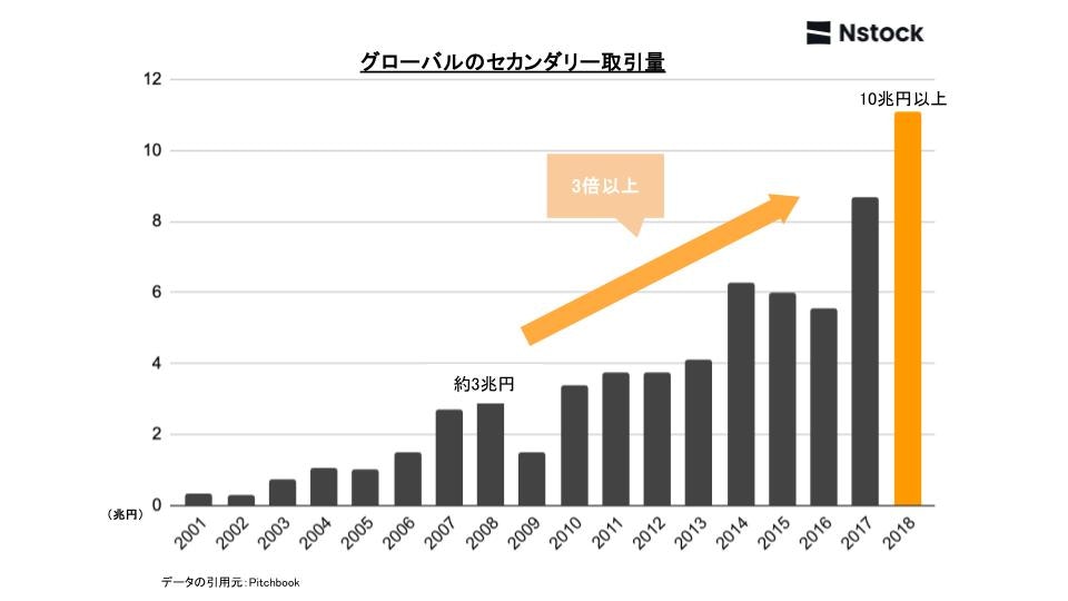 それ以降、グローバルでの非上場株式のセカンダリー取引量は増加しています。