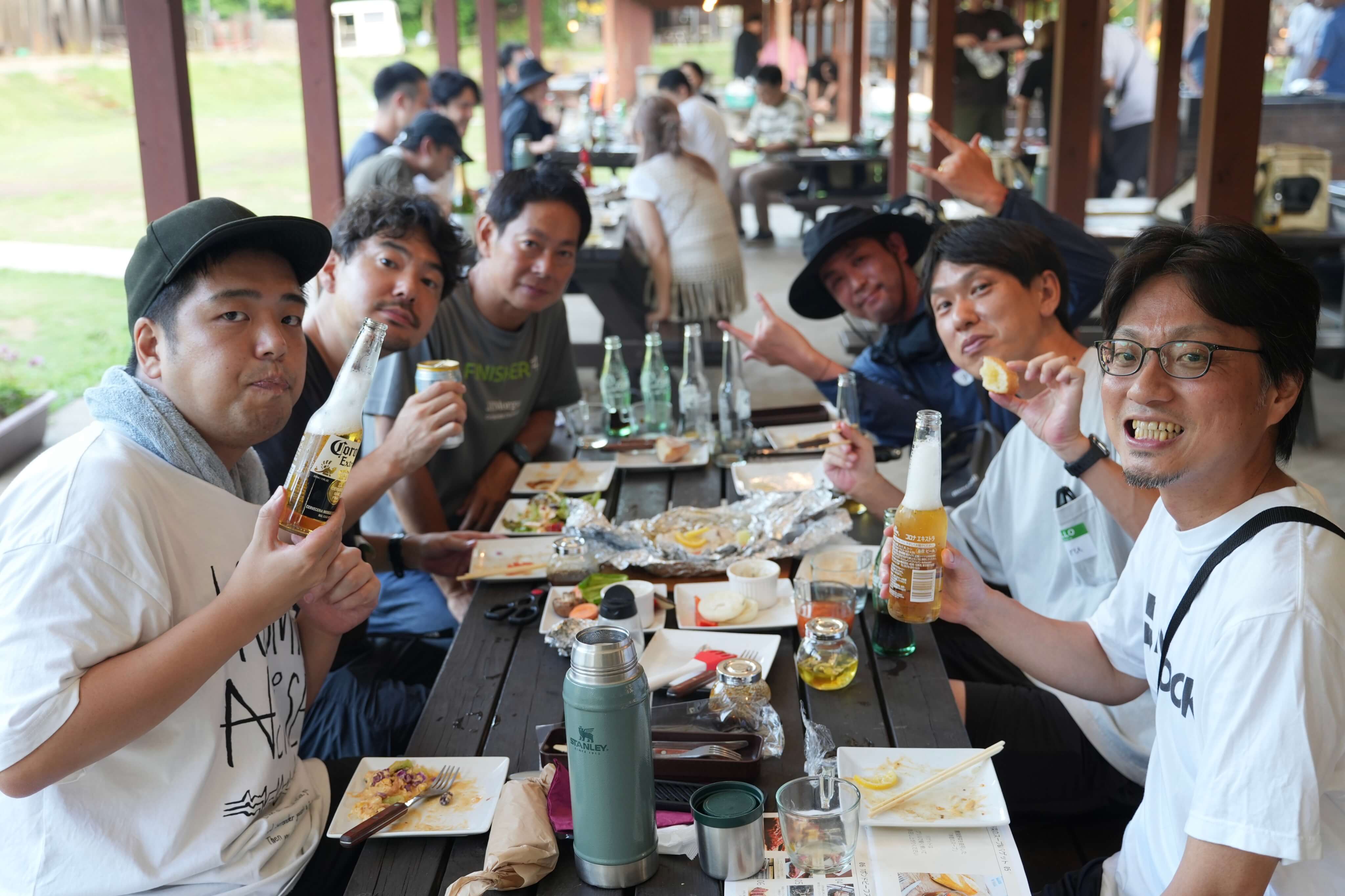 夕方にはまじめパートが終了し、THE FARMへ移動してお待ちかねの「交流パート」へ突入。集合写真を撮ってから、BBQで乾杯をしました!この瞬間は何度やってもいいですね。