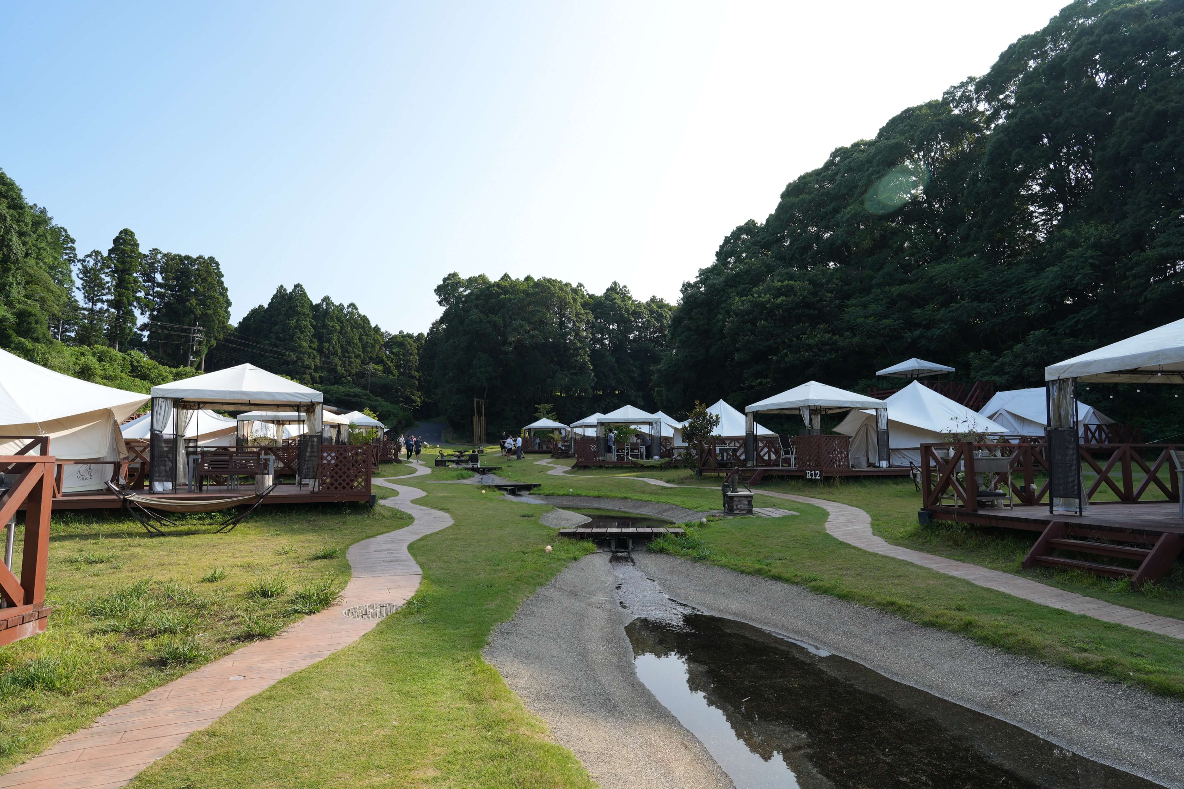 私達が宿泊したエリアには30棟ほどのグランピングテントがあり、貸し切りだったため「村」のような雰囲気を味わうことができました。「今回が初めてのグランピング」というメンバーも多く「テントの中にエアコンとベッド!?快適すぎる!これホテルじゃん」と驚愕していました。