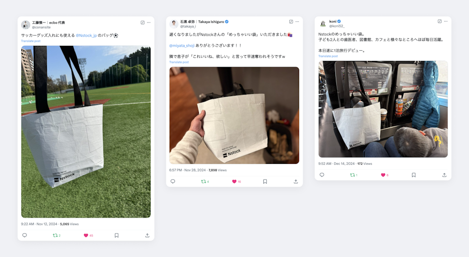 Nstockのメンバーが様々なトークテーマで語るラジオ(毎週水曜更新)に出演し、新作ノベルティの存在を匂わせていました。ちなみに“めっちゃいい袋”という名前はこのラジオでの何気ない会話から生まれ、そのまま採用しました。キャッチーでありながら実物のクオリティも名前に負けていないので、認知と価値を同時に伝えられるちょうどいい言葉だと思っています(笑)。