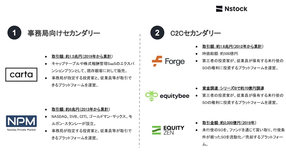 2013年のFacebookの事例以降、上場前にセカンダリーのプロダクトを使って取引を行った会社は複数あります。ただし、セカンダリー自体は「未上場だけど誰がみても絶対に成功するだろう数社」に限定されていました。