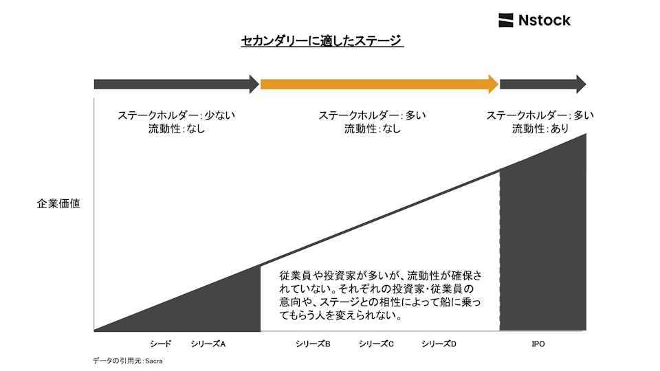 その中で、「え、上場しなかったらSOって売れなくなるじゃん!」と思う従業員に対して、子供の教育費やマイホームの購入に必要な資金源を確保してあげる手段として、セカンダリーを活用する会社が増えています。事業を伸ばすだけではなく、従業員のためにセカンダリーを導入することで、リテンションの改善や、会社のカルチャーやモラルを維持できるので、結果的に上場前に力強く成長する土台作りに繋がっているように思います。