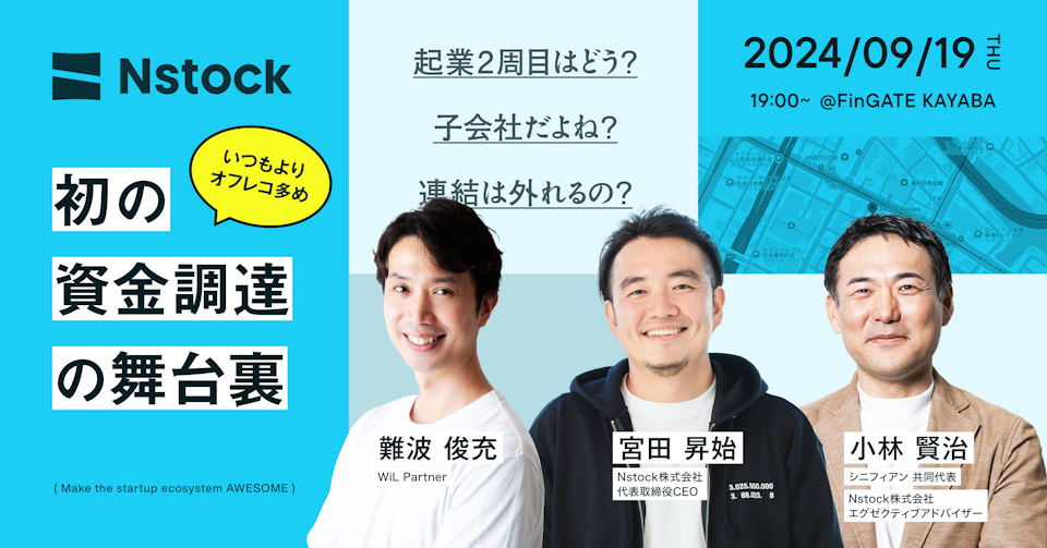 また、9月19日(木)には、CEO/CFOやコーポレート責任者の方々に向けたイベント「Nstock 初の資金調達の舞台裏」を開催します。オフレコトーク満載で繰り広げる予定です。ご興味ある方はぜひお申し込みください。